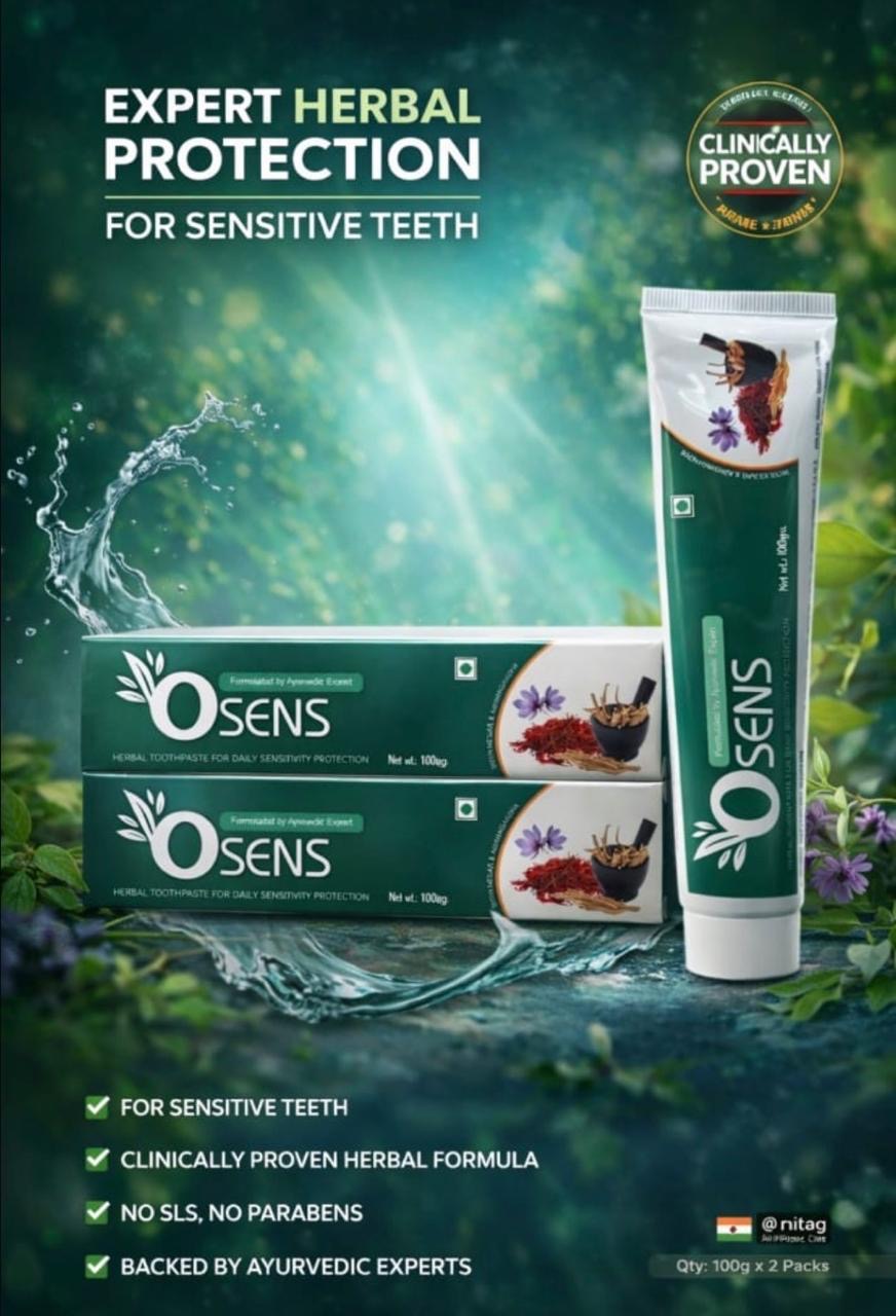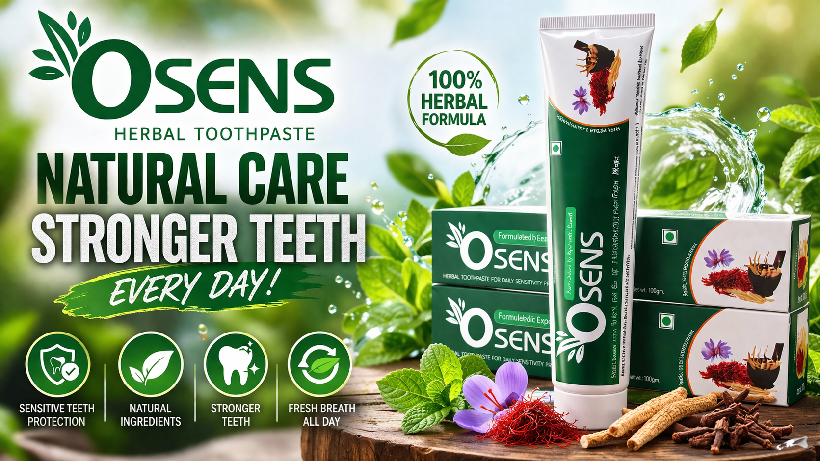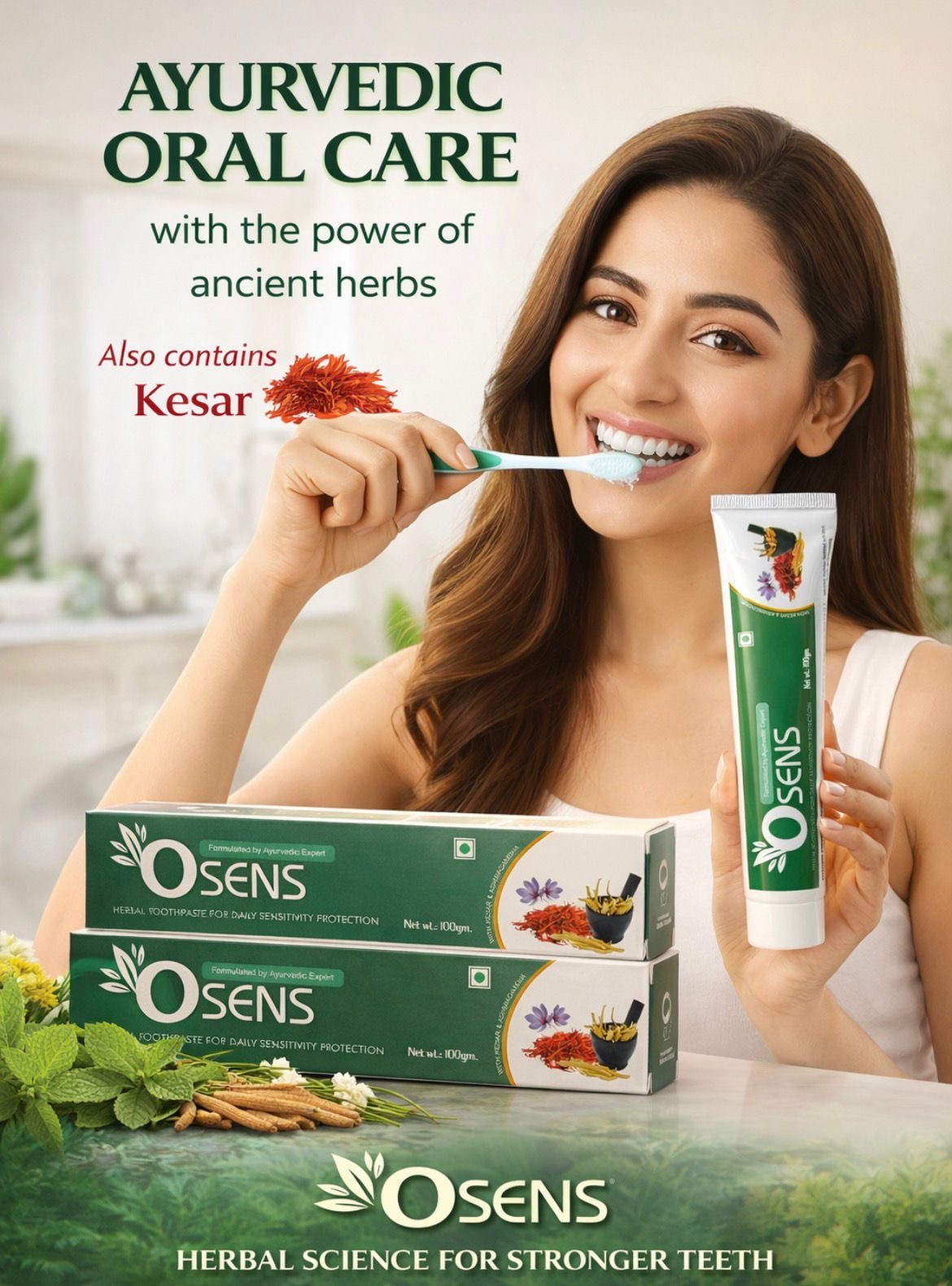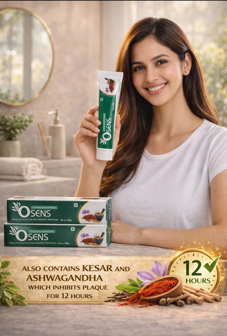 OSens Herbal Toothpaste is a premium blend of natural ingredients designed to deliver long-lasting oral protection and freshness. Enriched with the goodness of Ashwagandha and Kesar, this advanced herbal formula helps inhibit plaque formation for up to 12 hours, keeping your teeth clean and your breath fresh throughout the day.
